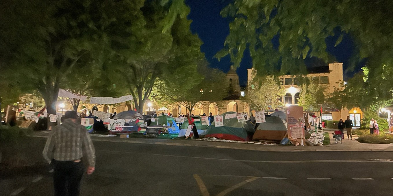 Stanford University encampment on May 5, 2024. (Photo by Christine Mrak)